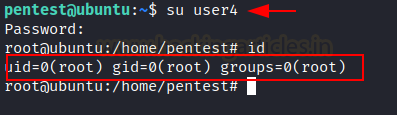Now switch user and access the terminal through user4 and confirm the root access.