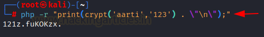 php -r "print(crypt('aarti','123') . \"\n\");"