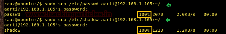 As we know sudo right is available for SCP but it is not possible to get bash shell directory as shown above because it is a means of securely moving any files between a local host and a remote host. Therefore we can use it for transferring those system files which requires root permission to perform read/write operation such as /etc/passwd and /etc/shadow files.