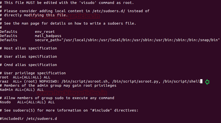 Now allow raaz to run all above script as root user by editing sudoers file with the help of the following command.