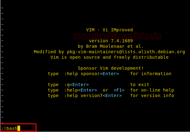 Thus, It will open vi editors for editing, BUT for spawning root shell type !bash as shown below and hit enter, you get root access as done above using Less command.