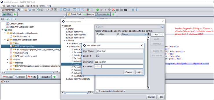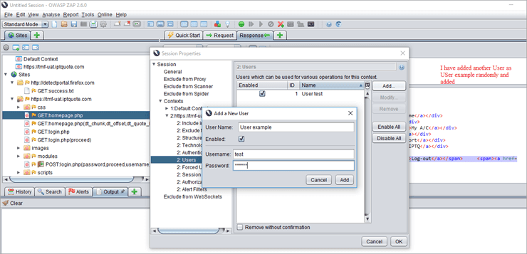ZAP Authentication, Session And User Management